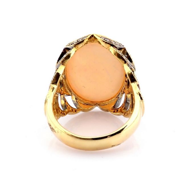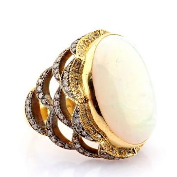 - 18K yellow gold ring detailed with opal and brilliant diamonds--------------------------------------------------