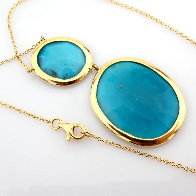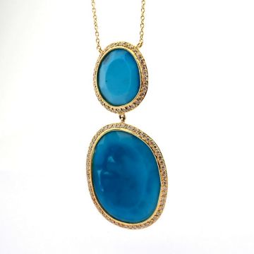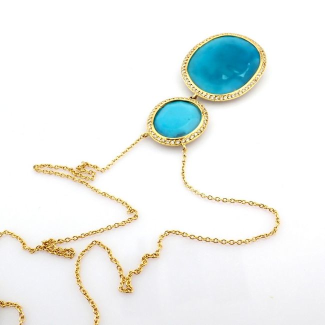 - 18K yellow gold necklace detailed with turquoise and brilliant diamonds--------------------------------------------------