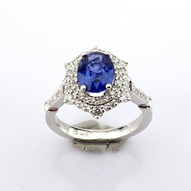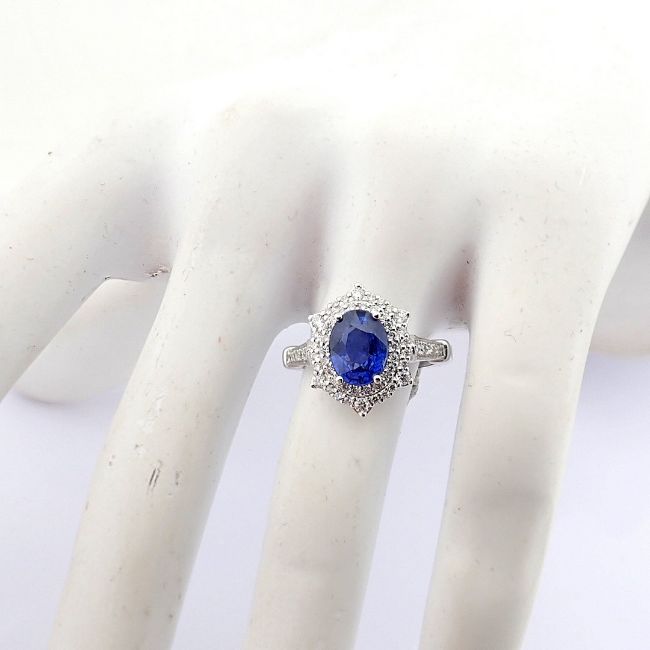 - An exquisite 18k white gold cluster ring detailed with sapphire and brilliant diamonds--------------------------------------------------