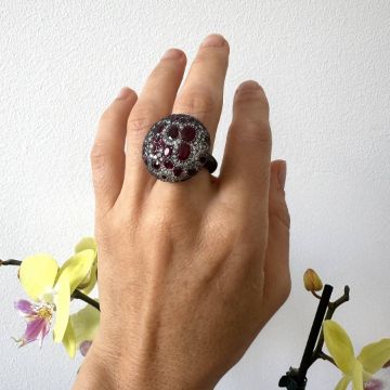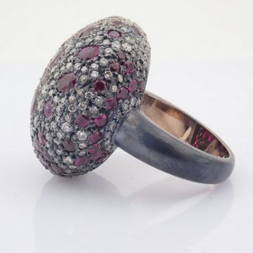 - An exquisite ring detailed with vibrant rubies, brilliant diamonds and gold on silver- Hand Made Ring- One Of Kind--------------------------------------------------