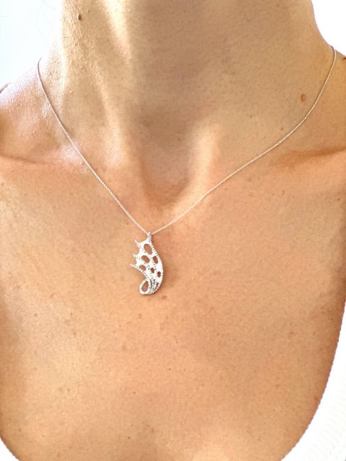 - 18K White gold necklace intricately detailed with brilliant diamonds--------------------------------------------------