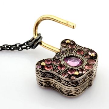 - An exquisite, convertible clasp necklace embellished with gold, colourful stones, and diamonds on silver- Hand Made Necklace--------------------------------------------------