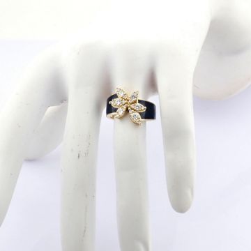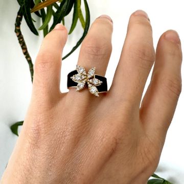 - 14K yellow gold ring detailed with black laser enamel and brilliant diamonds--------------------------------------------------