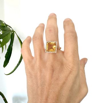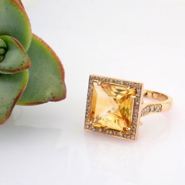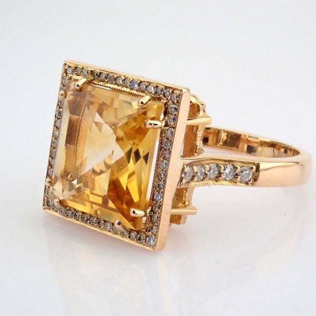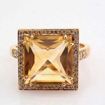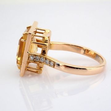Title: 18K Rose gold ring , detailed with 5.20ct Citrine and brilliant diamonds