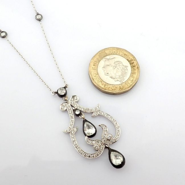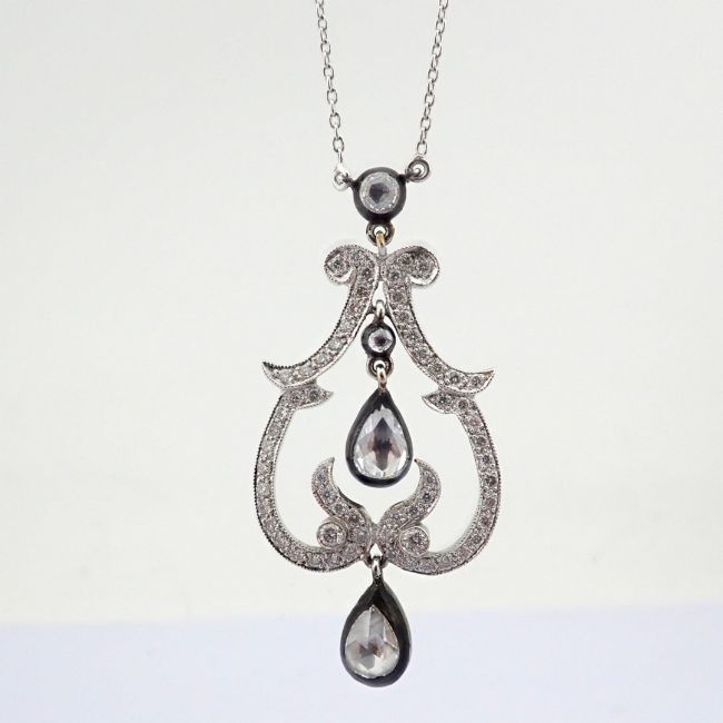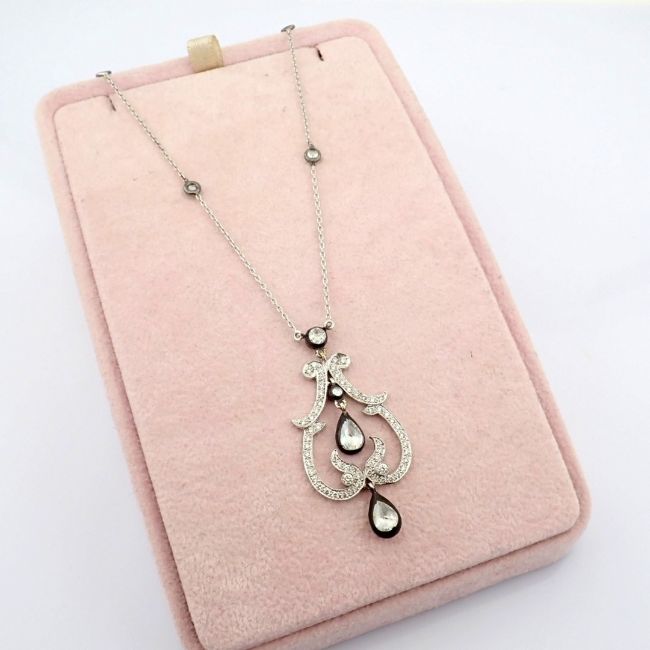- 18K white gold necklace detailed with fancy cut and brilliant diamonds--------------------------------------------------