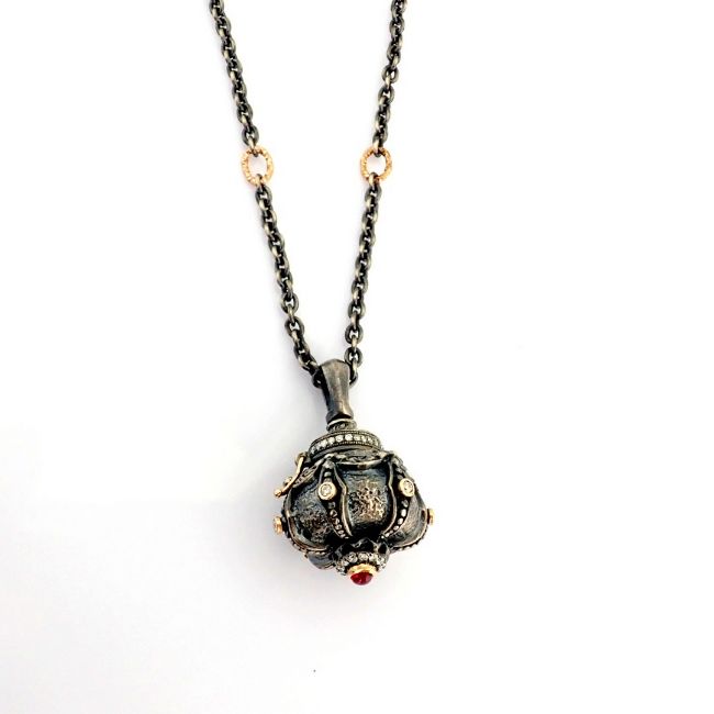 - An exquisite crown necklace -that you can also use as a small storage box -intricately detailed with brilliant diamonds and gold on silver.- Hand Made Necklace- One Of Kind--------------------------------------------------