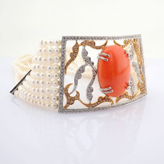 - An exquisite pearl chocker detailed with coral and brilliant diamonds--------------------------------------------------