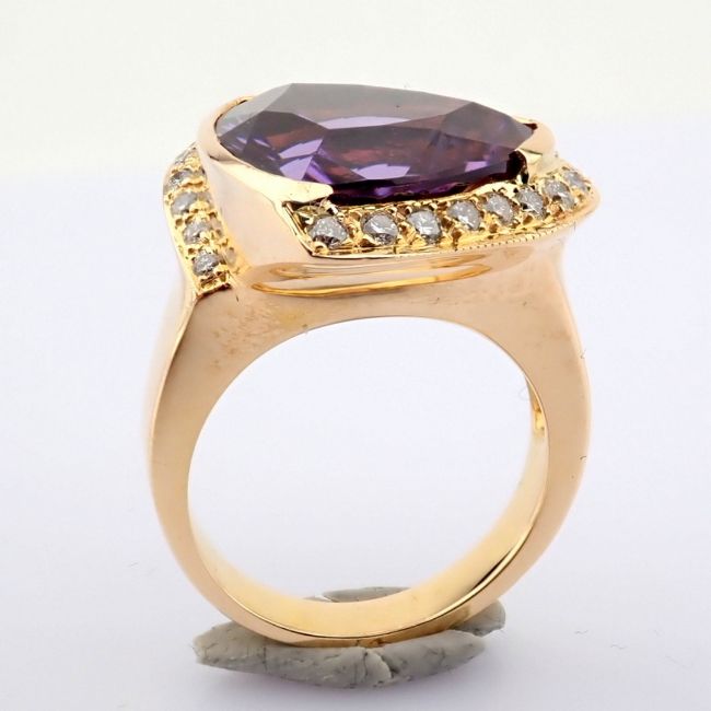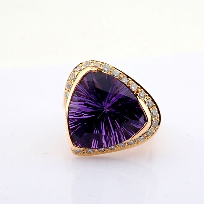 - An exquisite 18K cluster ring detailed with amethyst and brilliant diamonds--------------------------------------------------