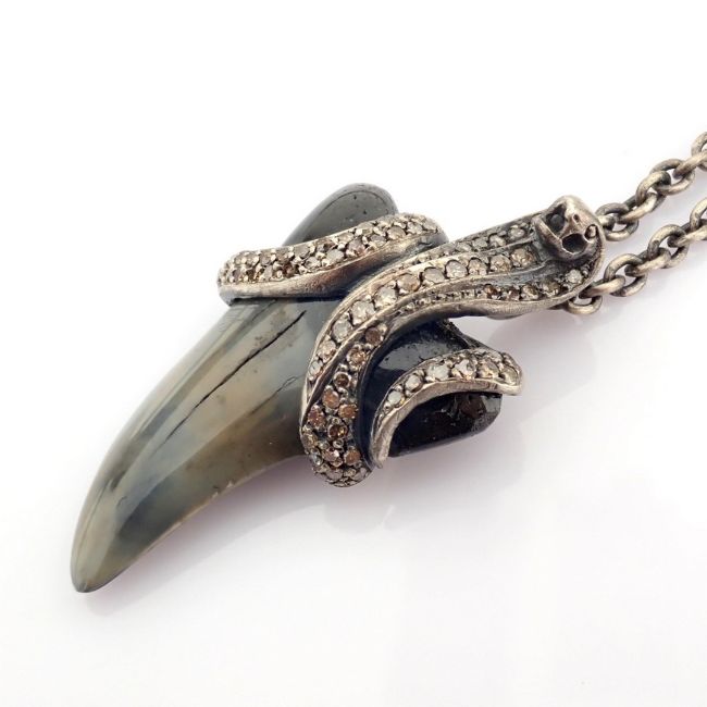 - A shark tooth necklace detailed with brilliant diamonds and gold on silver.--------------------------------------------------