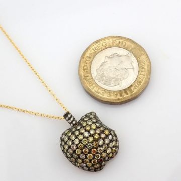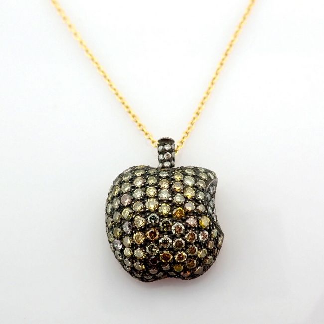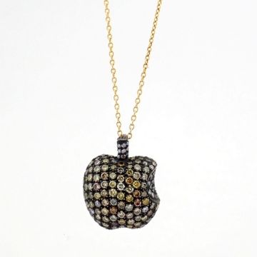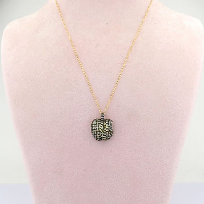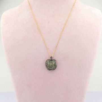 - An exquisite apple necklace detailed with brilliant diamonds and gold on silver- Hand Made Necklace--------------------------------------------------