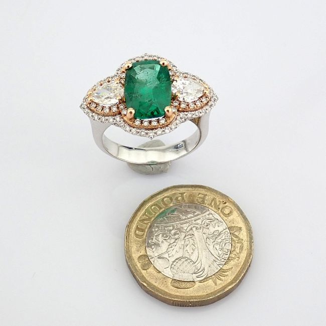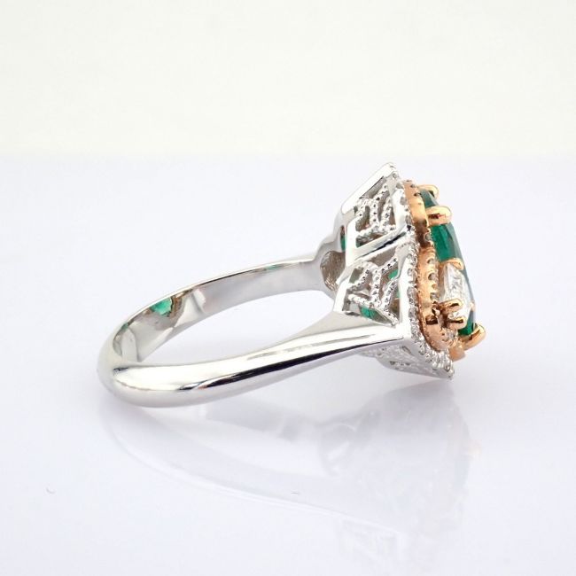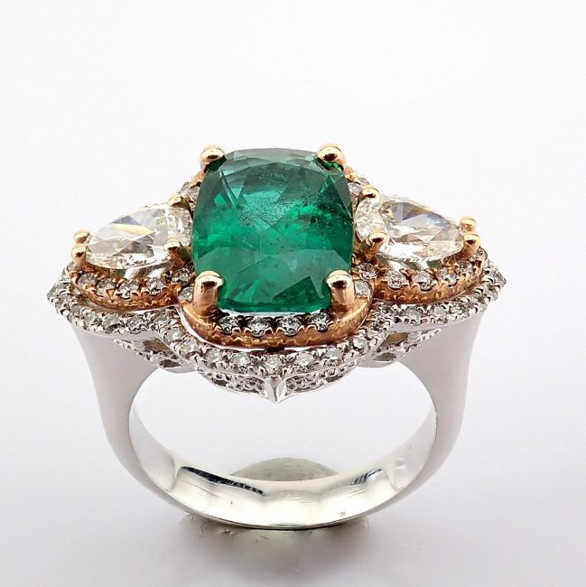 - An exquisite ring detailed with vibrant emerald, different cut diamonds--------------------------------------------------