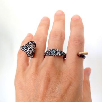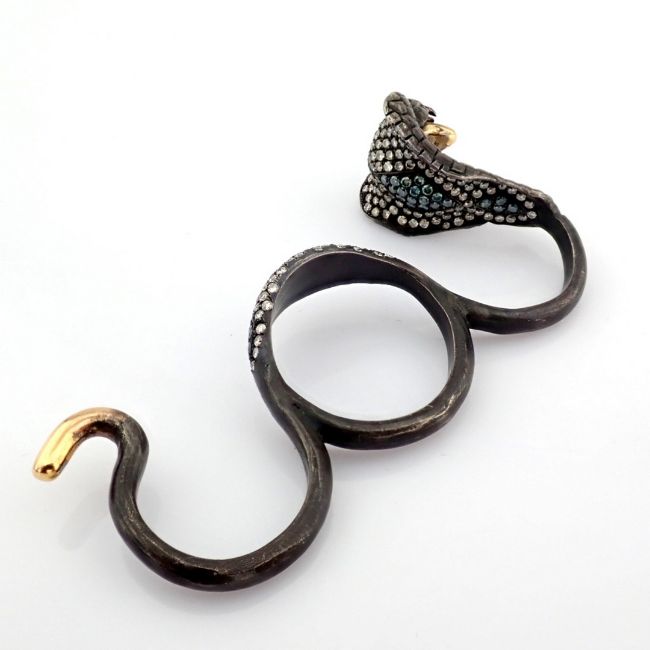 - An exquisite snake ring detailed with brilliant diamonds and gold on silver.--------------------------------------------------