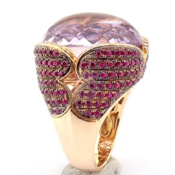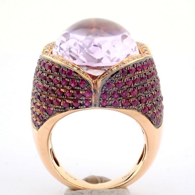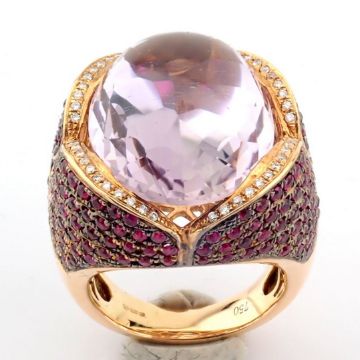 - 18K rose gold ring detailed with ruby, amethyst and brilliant diamonds--------------------------------------------------