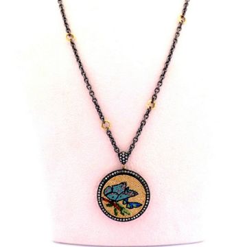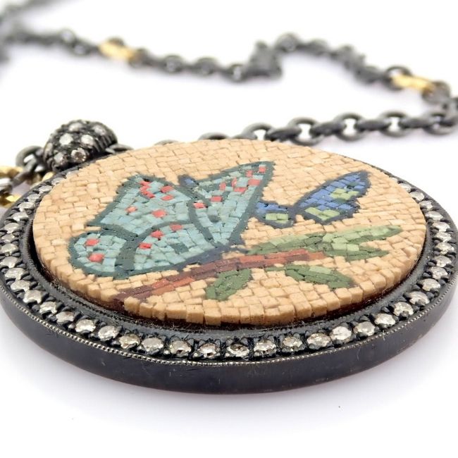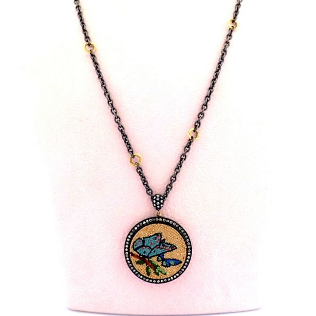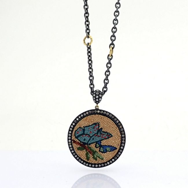 - An exquisite 18k necklace detailed with micro-mosaic and brilliant diamonds - Hand Made Necklace- One Of Kind--------------------------------------------------