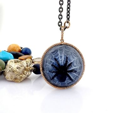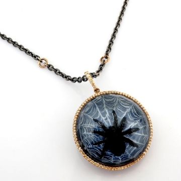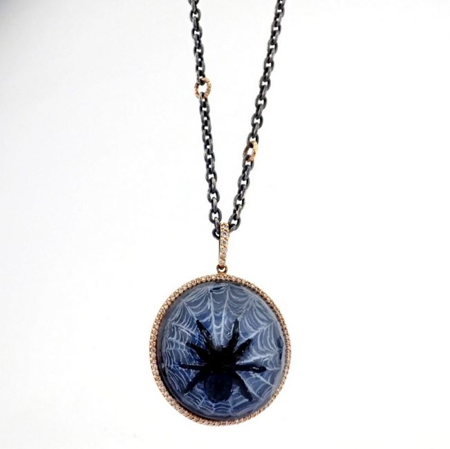 - An exquisite hand-made gold-silver necklace detailed with topaz,. reversely engraved intaglio spider and brilliant diamonds- Hand Made Necklace- One Of Kind--------------------------------------------------