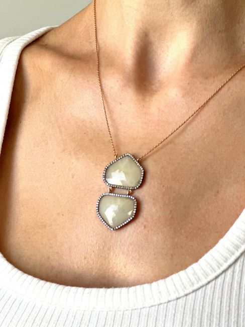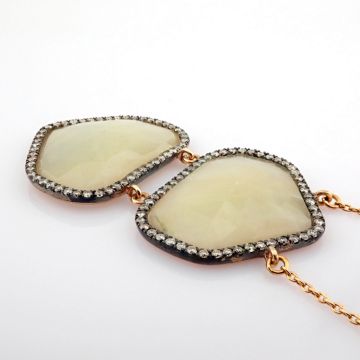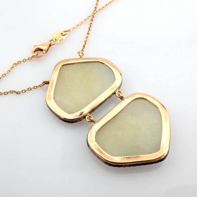 - An exquisite gold necklace detailed with fancy cut rough Sapphire in the centre and brilliant diamonds on silver frame.--------------------------------------------------