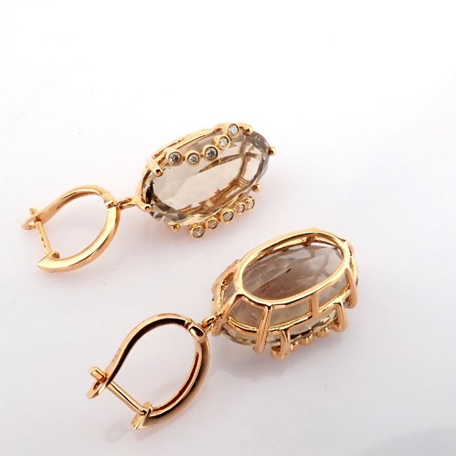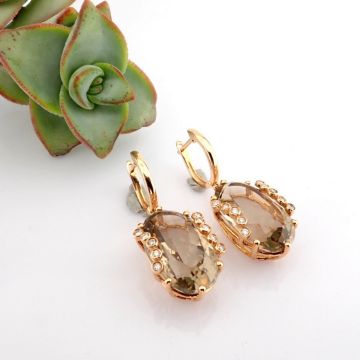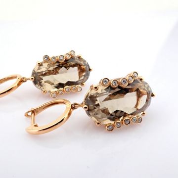 - 18K rose gold earrings detailed with smoky topaz and brilliant diamonds--------------------------------------------------