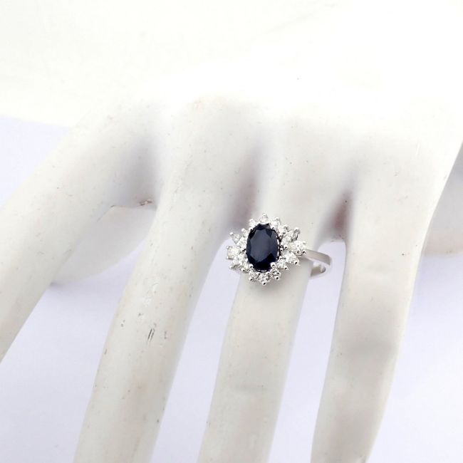 - 18K white gold cluster ring detailed with sapphire and diamonds--------------------------------------------------