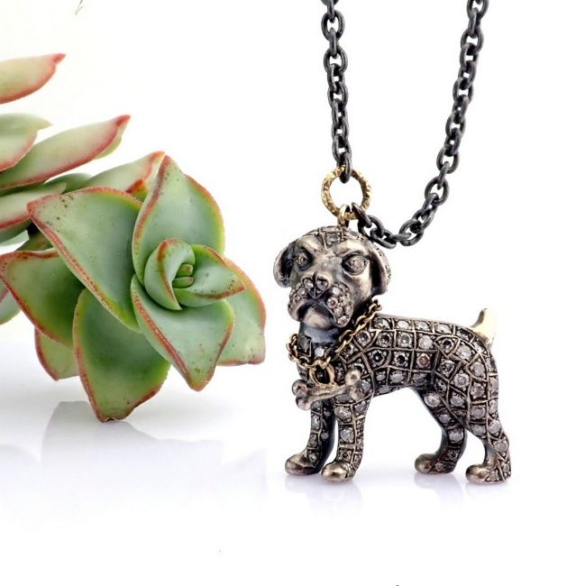 - Our loyal pawed friends! Necklace detailed with brilliant diamonds and gold on silver- Hand Made Necklace- One Of Kind--------------------------------------------------