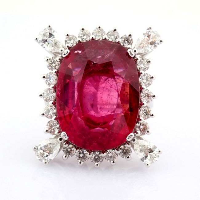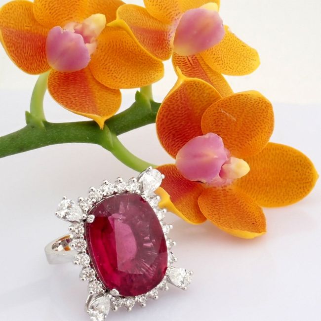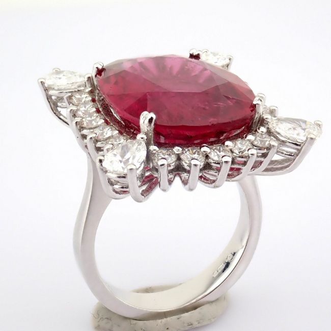 - An exquisite 18k white gold cluster ring detailed with 13.92 ct tourmaline and 1.87 ct brilliant diamonds--------------------------------------------------