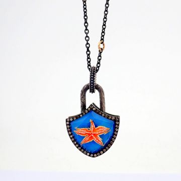 - An exquisite, convertible clasp necklace embellished with gold, topaz with reversely engraved intaglio starfish and diamonds on silver- Hand Made Necklace- One Of Kind--------------------------------------------------