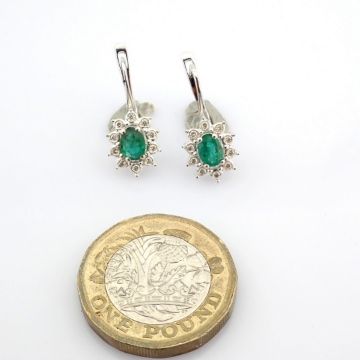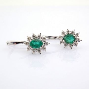 - 18K white gold cluster earring detailed with emerald and brilliant diamonds--------------------------------------------------