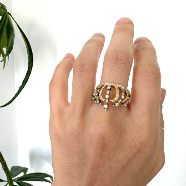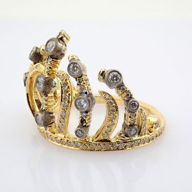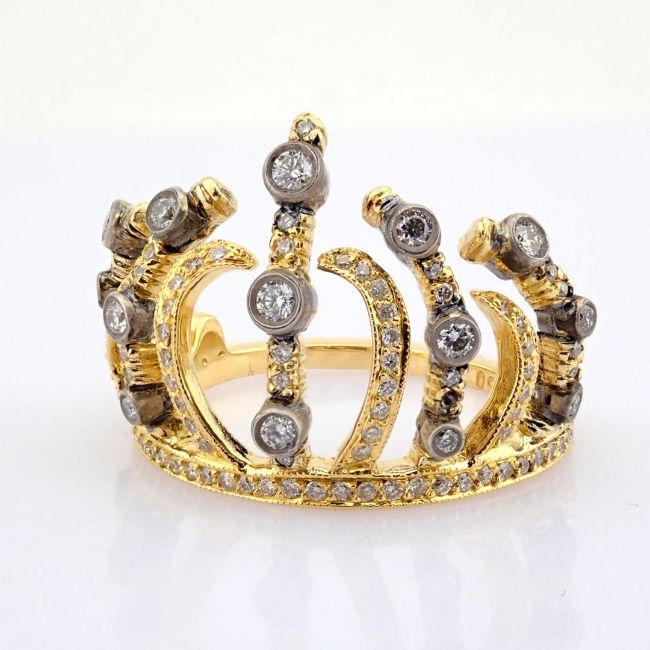 - An exquisite crown 18k gold ring detailed with brilliant diamonds--------------------------------------------------