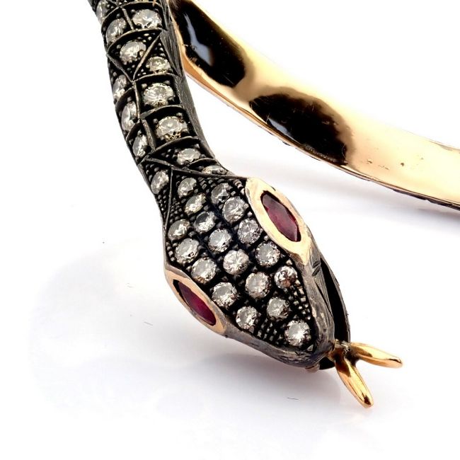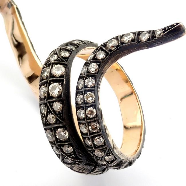 - A snake ring detailed with brilliant diamonds and gold on silver.--------------------------------------------------