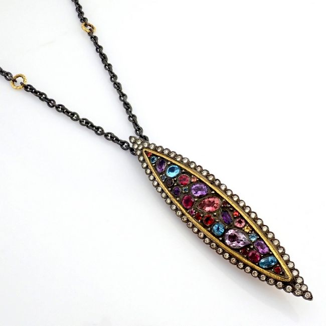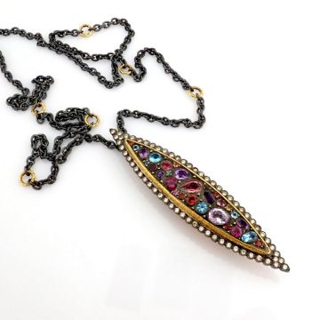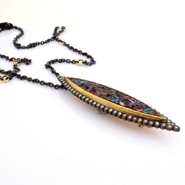 - An exquisite brooch or necklace detailed with colour stones, brilliant diamonds and gold on silver- Hand Made Necklace- One Of Kind--------------------------------------------------