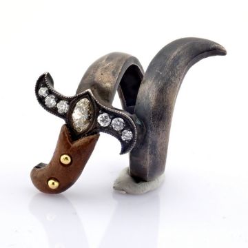 - An exquisite sword ring detailed with ebony, brilliant diamonds and gold on silver.- Hand Made Ring- One Of Kind--------------------------------------------------