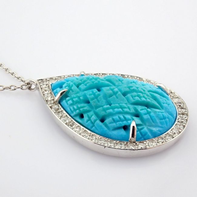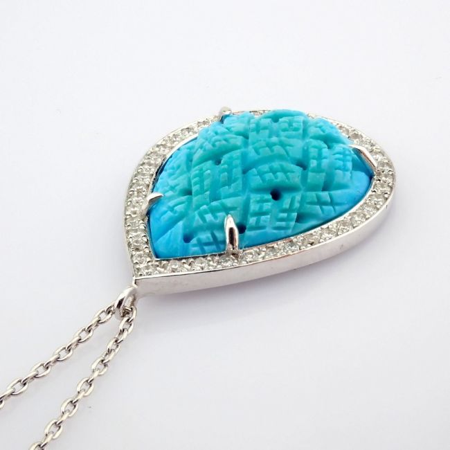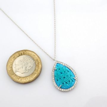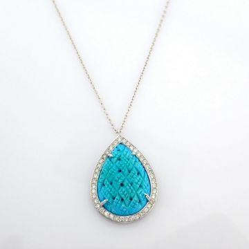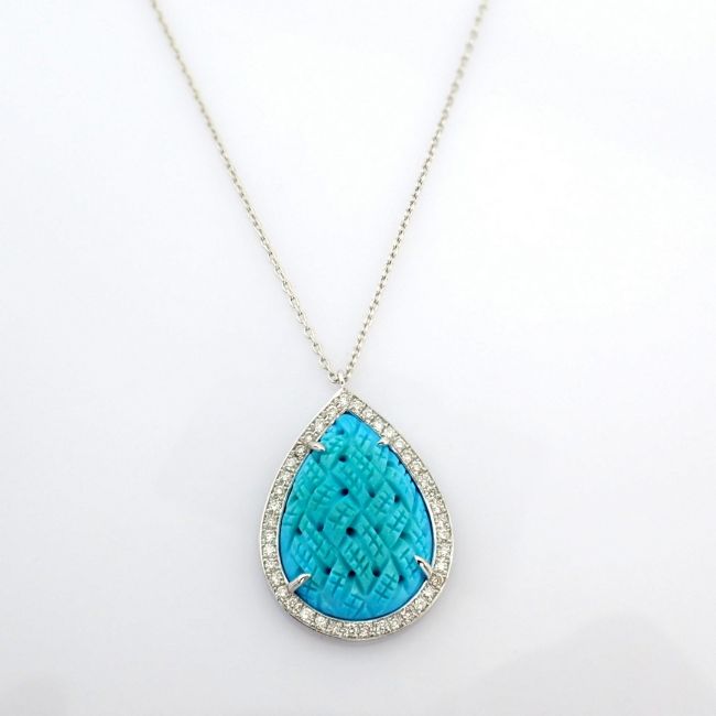 - An exquisite necklace detailed with special carved turquoise, brilliant diamonds and gold --------------------------------------------------