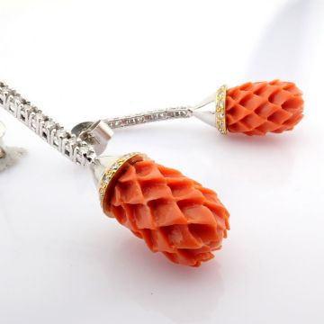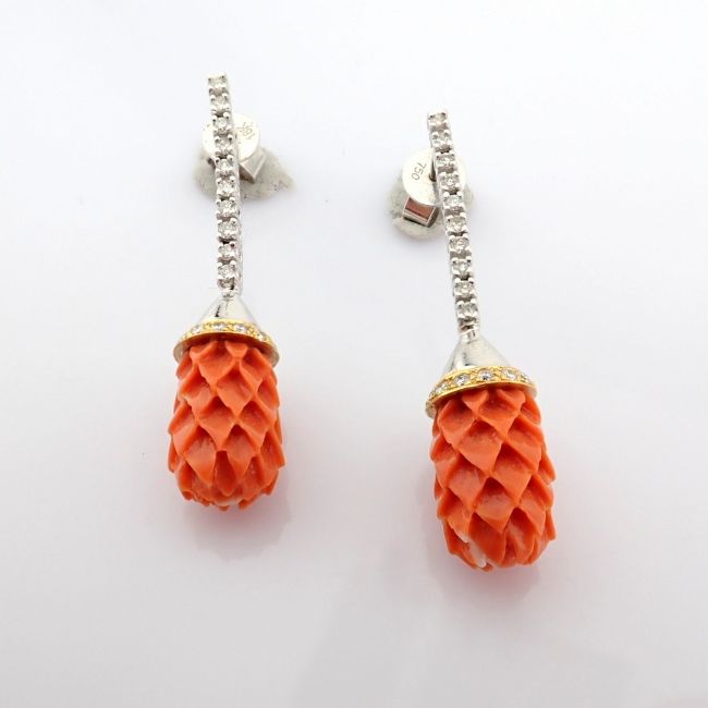- An exquisite earrings detailed with carved-coral, brilliant diamonds and gold --------------------------------------------------