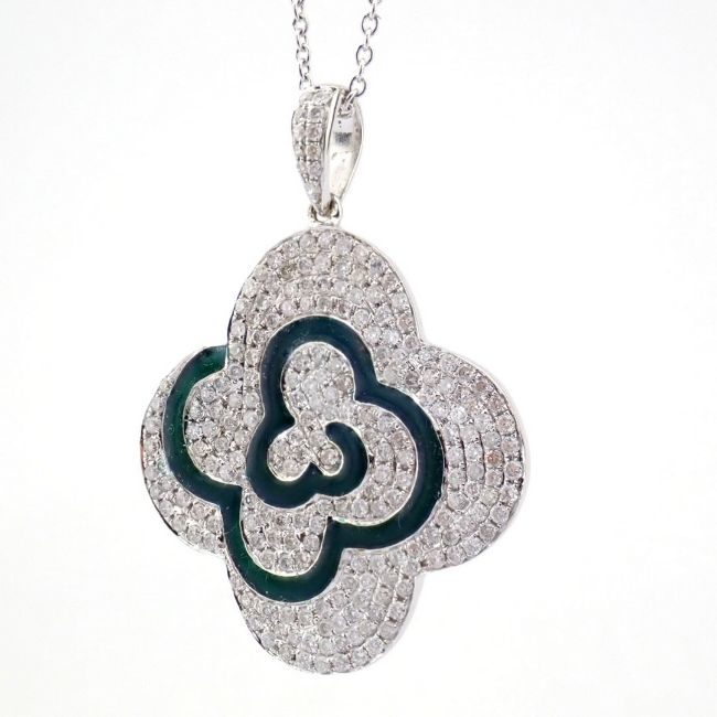 - 18K white gold necklace detailed with enamel , brilliant diamonds and gold --------------------------------------------------