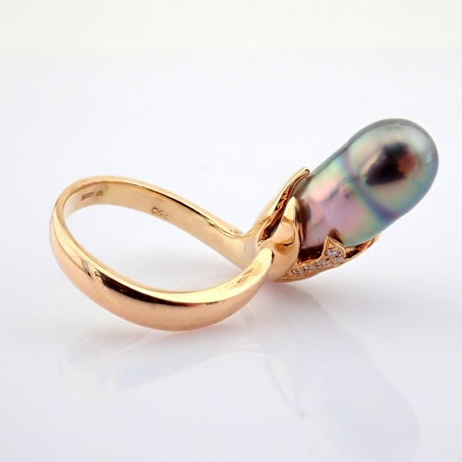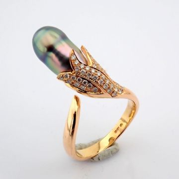 - 18K rose gold ring detailed with pearl and brilliant diamonds--------------------------------------------------