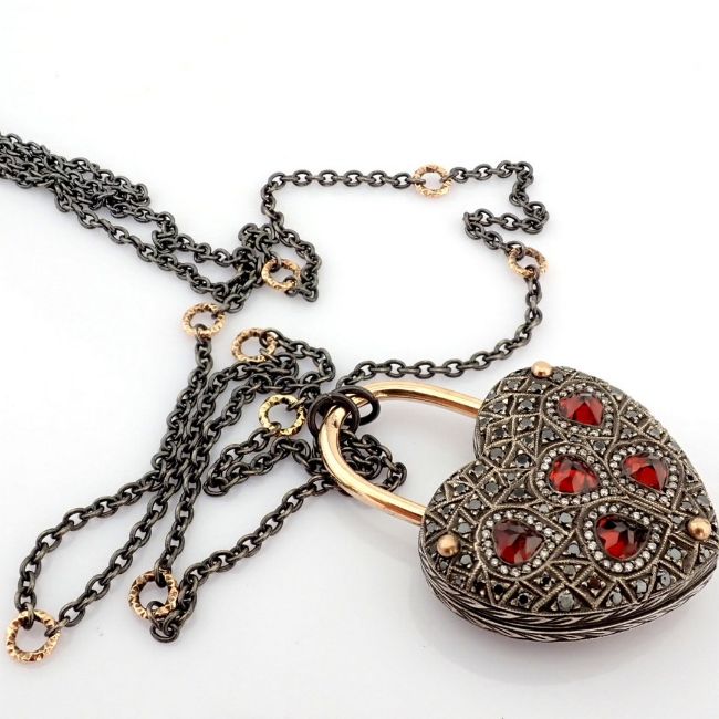 - STONES --------------------------------------------------- 0.23 ct H/SI Diamond- 1.05 ct Black Diamond- 2.62 ct Red Garnet--------------------------------------------------