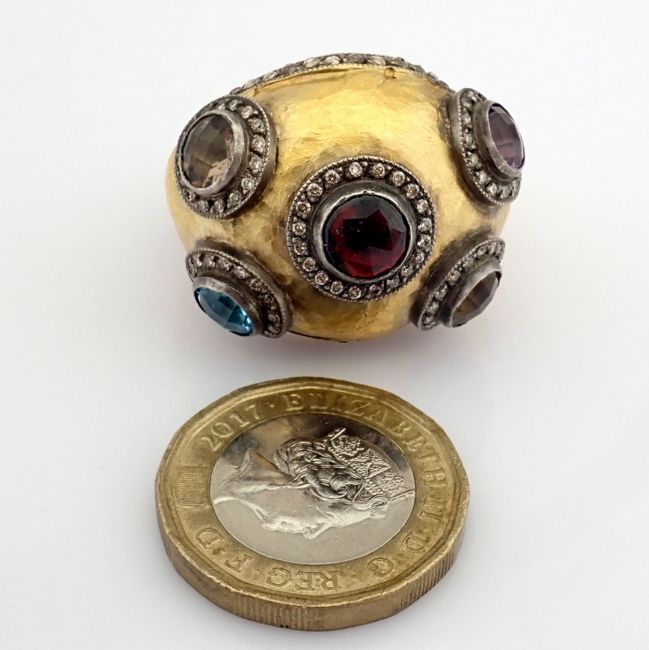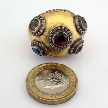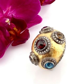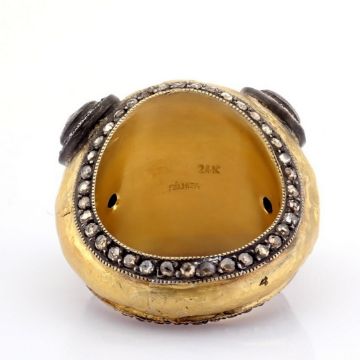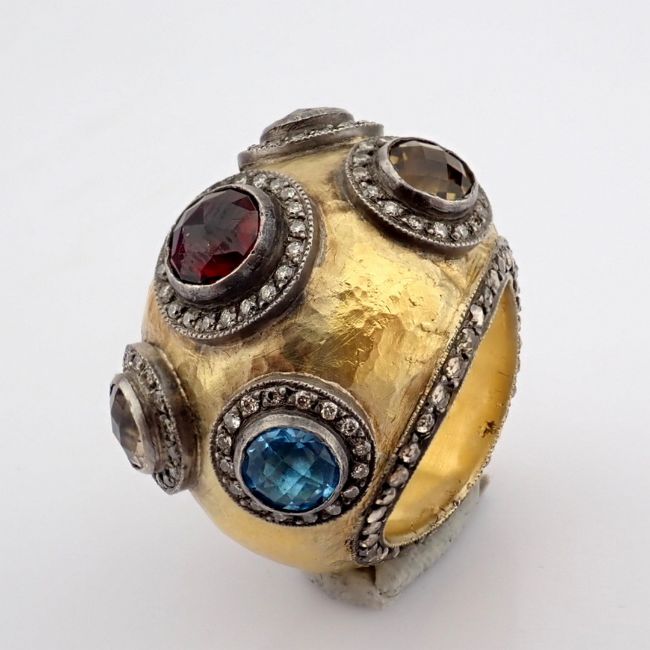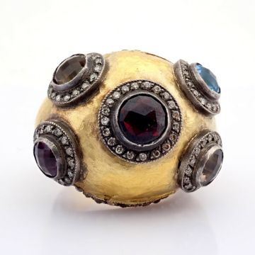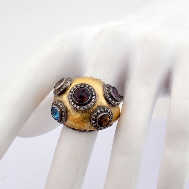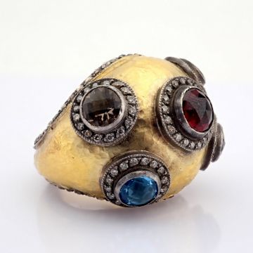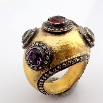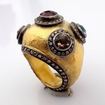 - 24K yellow gold exquisite ring detailed with semi precious stones and gold in silver - Hand Made Ring- One Of Kind--------------------------------------------------