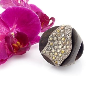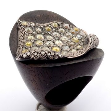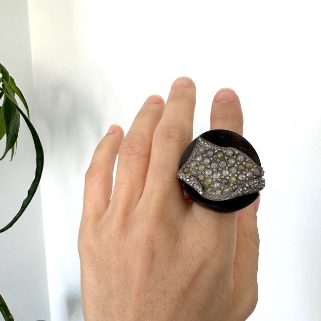 - An exquisite ebony ring detailed with brilliant diamonds and silver.- Hand Made Ring- One Of Kind--------------------------------------------------