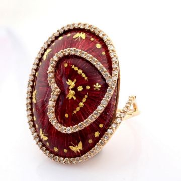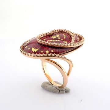 - An exquisite 18K yellow gold ring detailed with red enamel , grains of gold dust and brilliant diamonds--------------------------------------------------