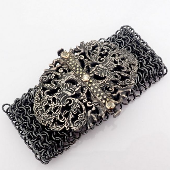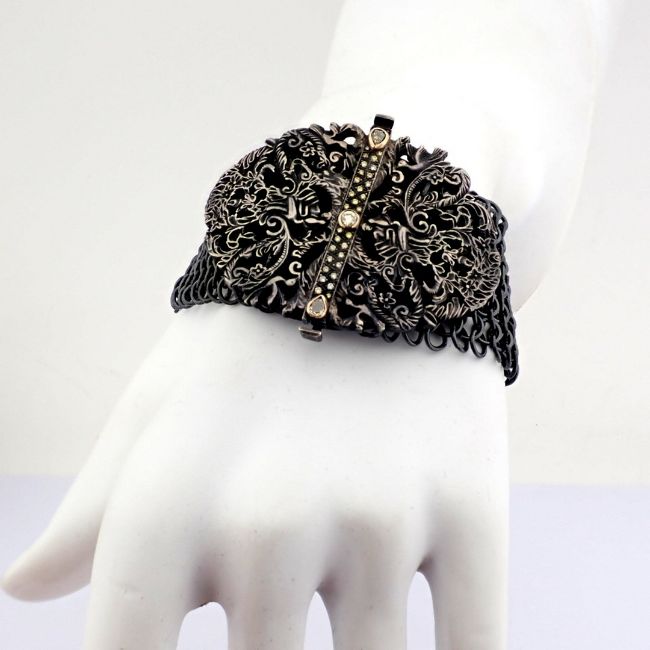 - A handwoven silver bracelet adorned with gold and precious stones- Hand Made Bracelet- One Of Kind--------------------------------------------------