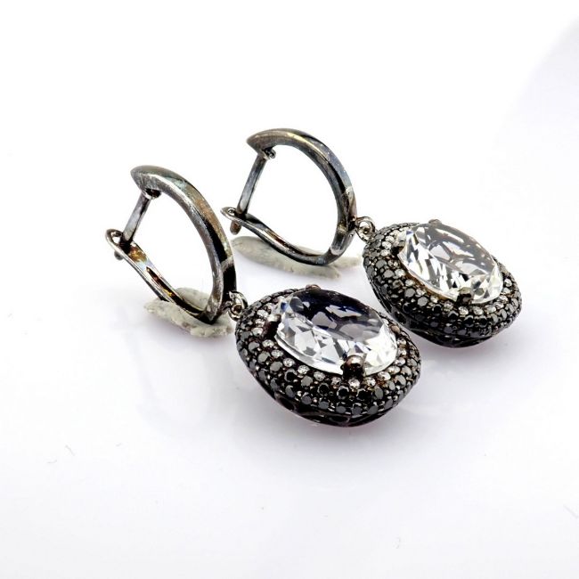 - An exquisite earrings detailed with white topaz, brilliant diamonds and gold in black rhodium--------------------------------------------------