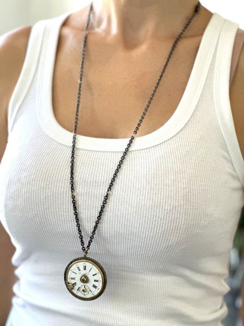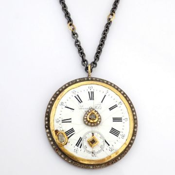 - An exquisite necklace made of gold and silver, featuring an antique watch dial adorned with precious colourful stones and diamonds- Hand Made Necklace- One Of Kind--------------------------------------------------