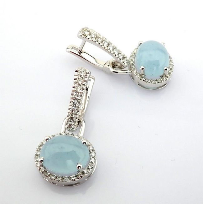 - 18K white gold earrings detailed with aquamarine and brilliant diamonds--------------------------------------------------