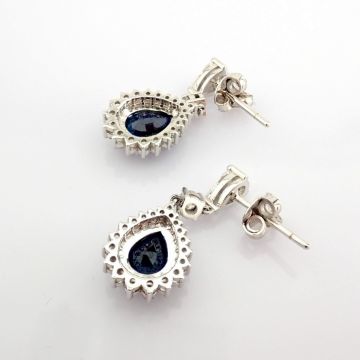 - 18K white gold cluster earrings detailed with sapphire and diamonds--------------------------------------------------