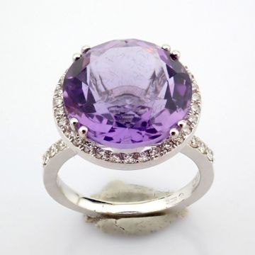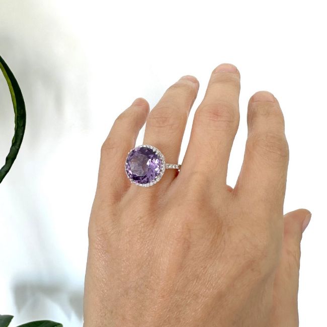 - 18k Cluster ring detailed with amethyst and brilliant diamonds--------------------------------------------------