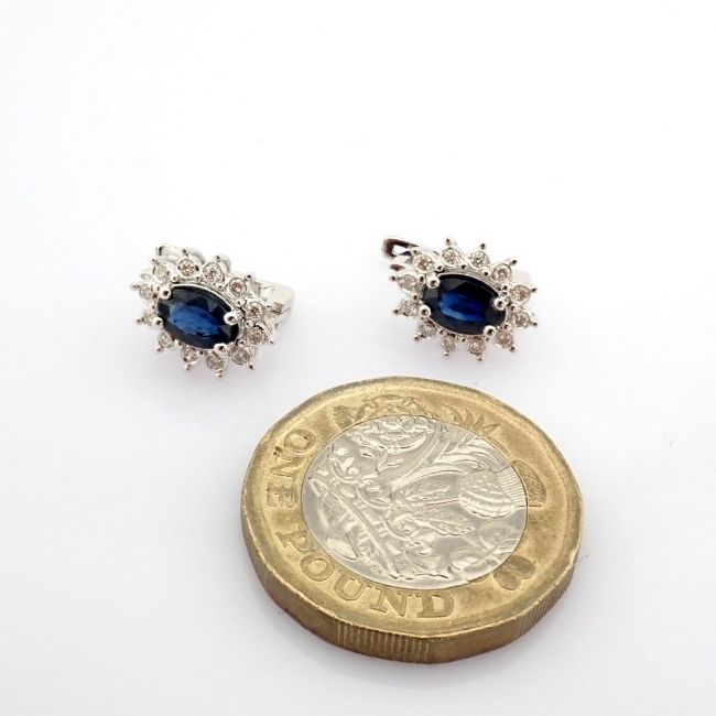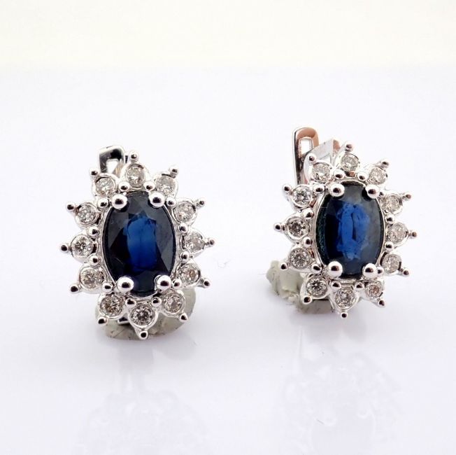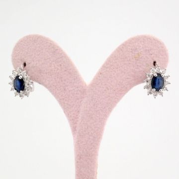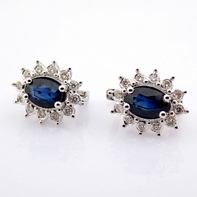 - 18K white gold cluster earrings detailed with sapphire and brilliant diamonds--------------------------------------------------
