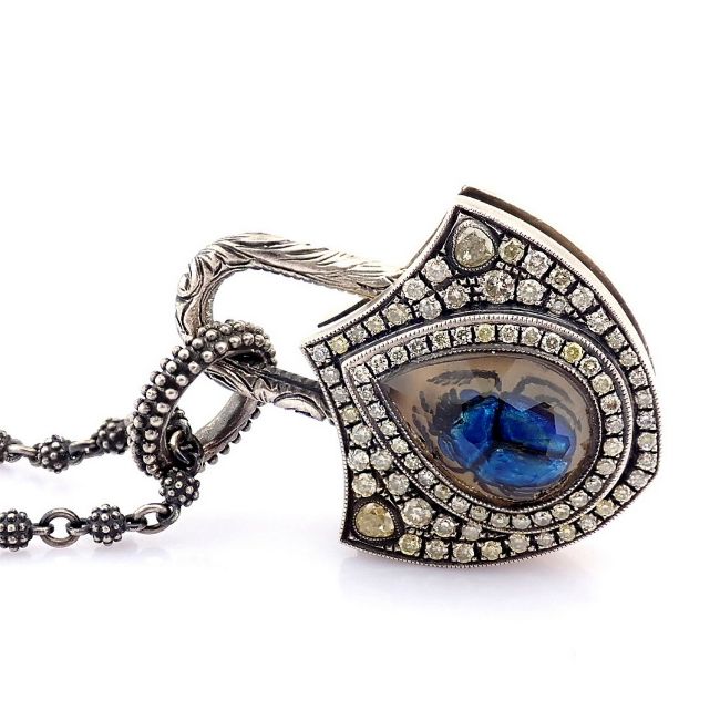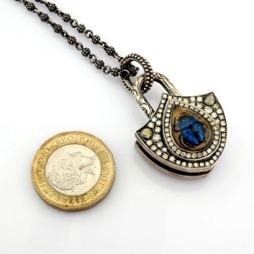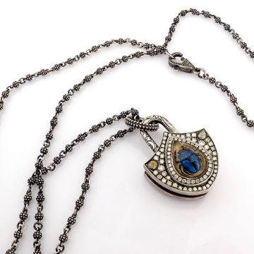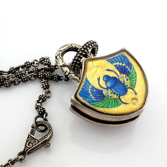- An exquisite, convertible clasp necklace embellished with gold, topaz with reversely engraved intaglio corn beetle and diamonds on silver- Hand Made Necklace- One Of Kind--------------------------------------------------