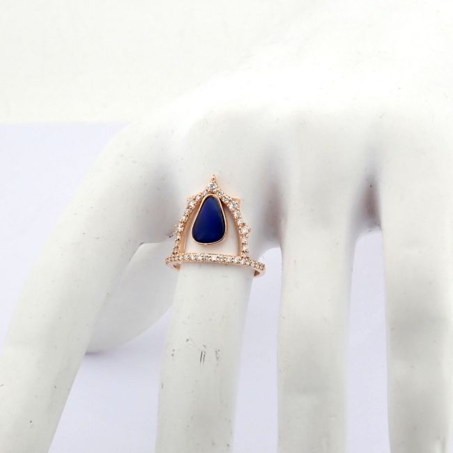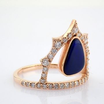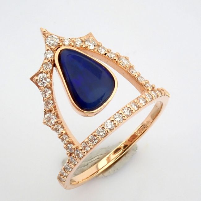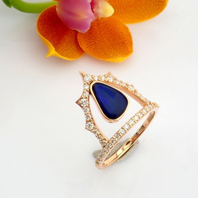 - 18K Rose gold ring , detailed with doublet opal and brilliant diamonds.--------------------------------------------------