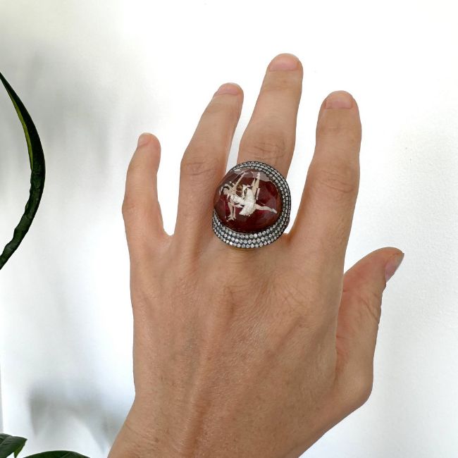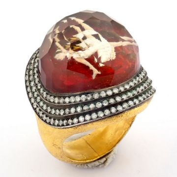 - An exquisite hand-made gold ring detailed with topaz and brilliant diamonds. Reversely engraved intaglio ballerina - Hand Made Ring- One Of Kind--------------------------------------------------