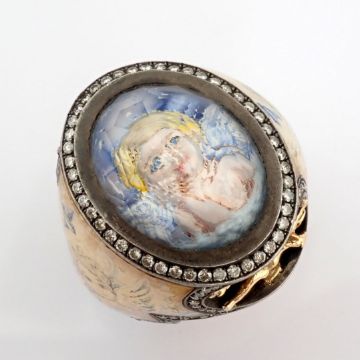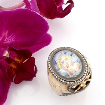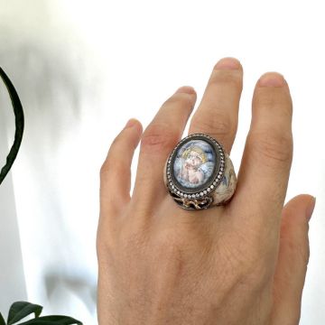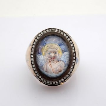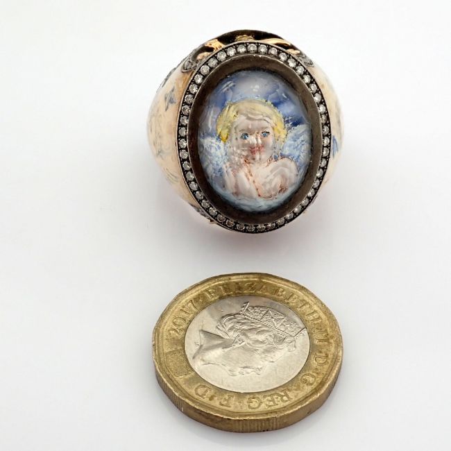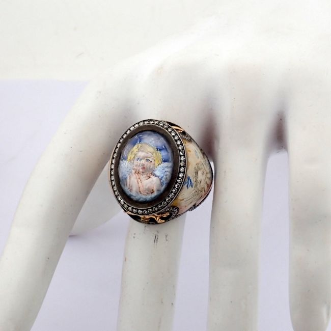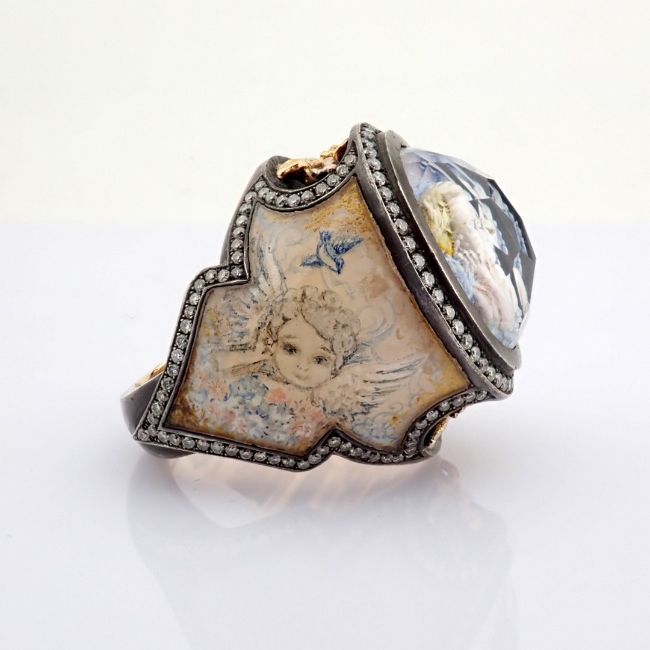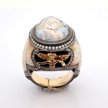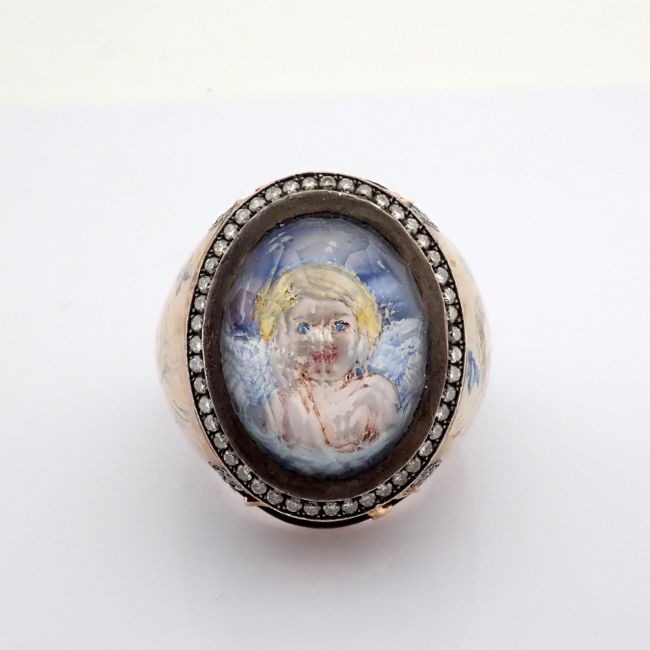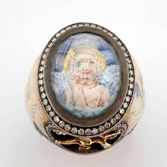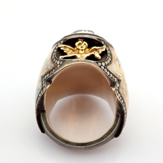 - An exquisite handmade ring, intricately detailed with topaz, featuring a reverse-engraved intaglio of an angel, surrounded by micro-art and brilliant diamonds.- Hand Made Ring- One Of Kind--------------------------------------------------