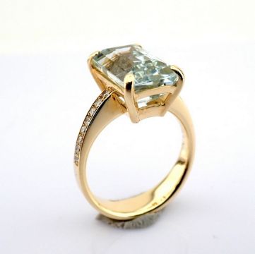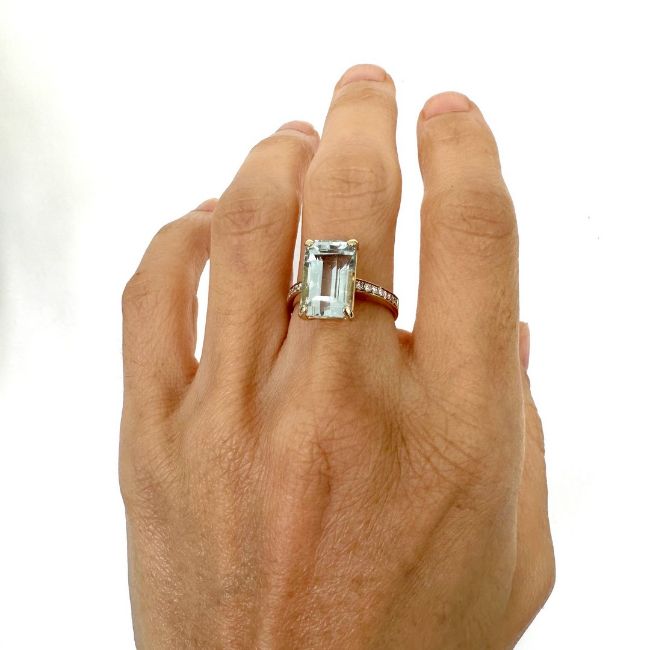 - 14K yellow gold ring detailed with aquamarine, brilliant diamonds--------------------------------------------------